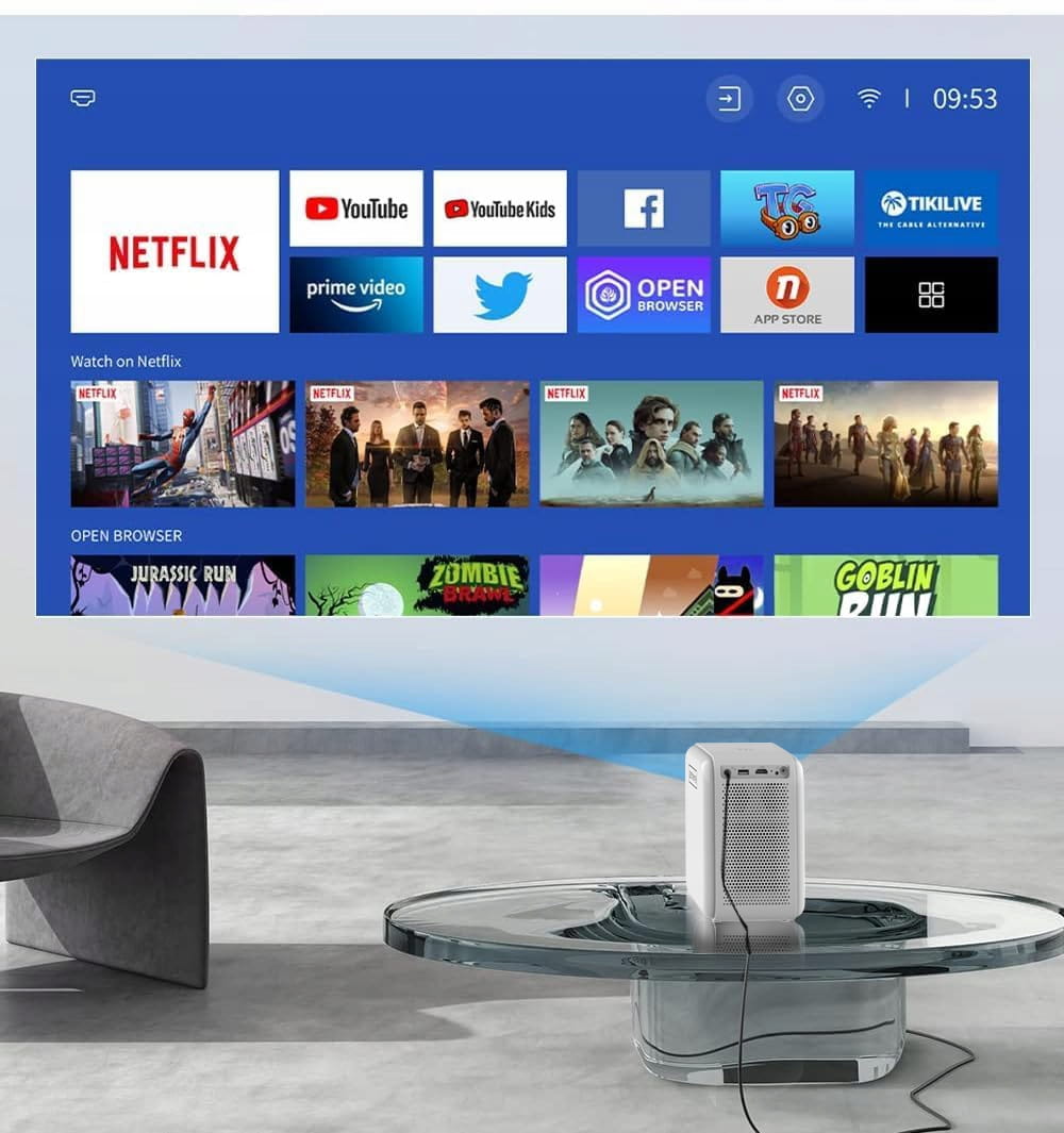 Full HD 4K projektors 12000lm 400 Ansi WiFi 2,4/5 GHz Miracast Aircast Linux SMART TV sertificēts Netflix Autofocus Bluetooth 5.1 36-200" collu Zenwire H9 projektors